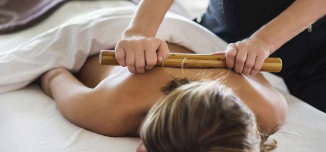 During the massage the bamboo sticks serve as an extension of the hands and the therapist can easily palpate, find tension, and dissolve knots and trigger points. They are also used to knead and stretch muscle and fascia in all directions. The pressure can be as light or as deep as necessary.